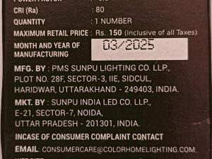 - Base Type: Standard B22D (Bayonet) base, making it compatible with most Indian household bulb holders.
