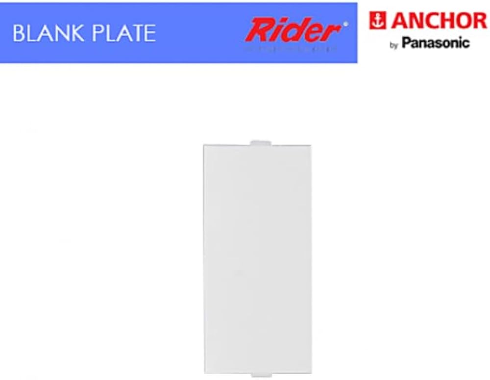 is a 1-module blank plate from the Rider series by Anchor by Panasonic. It is designed to cover empty slots in modular switchboards, providing a clean finish while preventing dust buildup and improving safety.